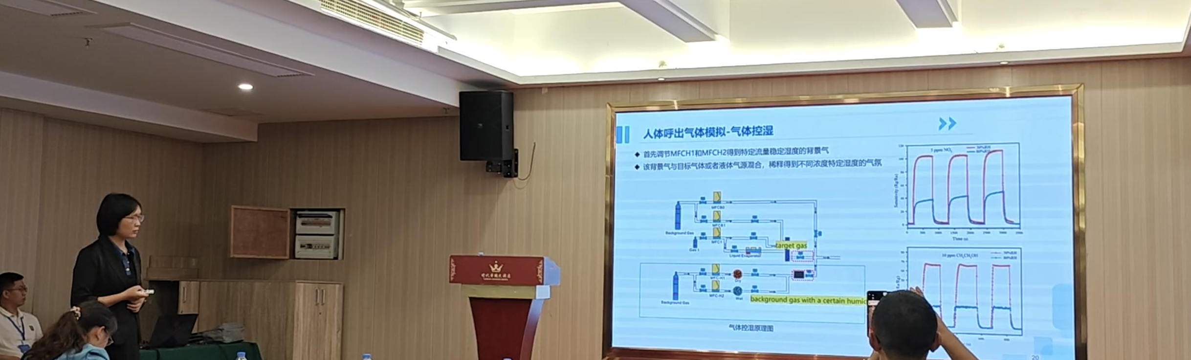 Minister Xu, Marketing Director of Sino Aggtech, shared the report "Flexible Sensor Test Solution", introducing the test solution of flexible sensor, and Sino Aggtech can provide electrical performance testing, mechanical performance calibration, mechanical and electric synchronization testing, multi-field environmental simulation, in-situ testing and other issues. Among them, for the multi-field environmental simulation, taking the human exhaled air simulation as a typical case, the real working conditions of the simulated human exhaled air are introduced, and it is necessary to comprehensively control multiple parameters such as interfering gas, exhalation humidity, exhalation temperature, and expiratory pressure frequency.